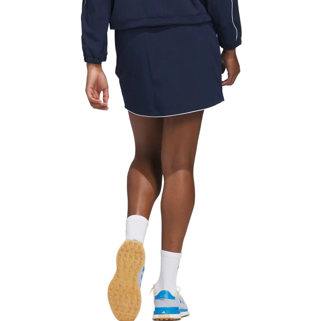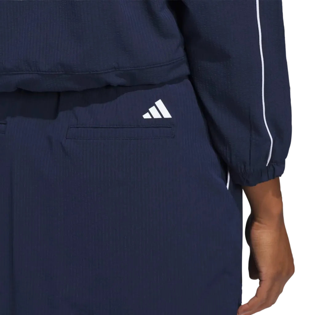 The Adidas Ladies Ultimate365 Seersucker Skort - Navy combines convenience with performance through its pull-on design and stretch fabric construction. Built for golfers who want comfort and style both on and off the course.