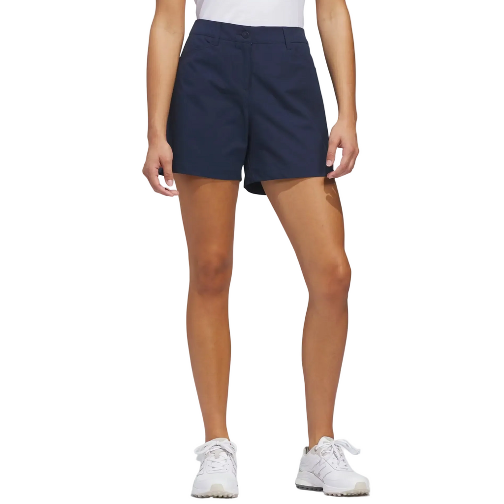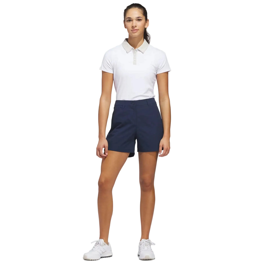 The Adidas Ladies Ultimate365+ Twistweave 5-Inch Shorts combine classic twill styling with innovative stretch technology for serious golfers. Built with Twistweave material that features twisted yarns acting like springs, these shorts deliver lightweight flexibility that moves with your swing.