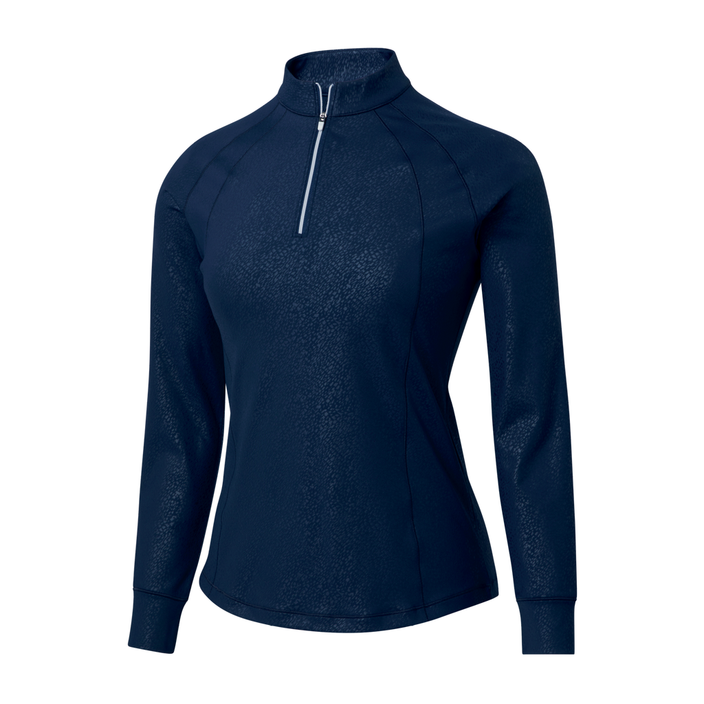 Adapt to changing weather conditions with the FootJoy Ladies Embossed Quarter Zip Pullover, a versatile women’s mid-layer designed for style, warmth, and performance. Crafted from soft four-way stretch fabric, it keeps your core warm without restricting your swing, making it the perfect layer for cool or breezy rounds.