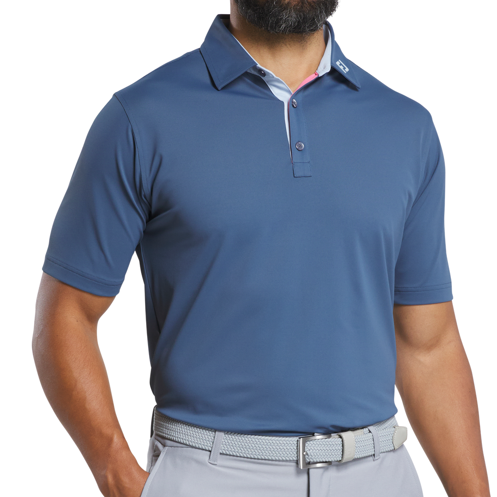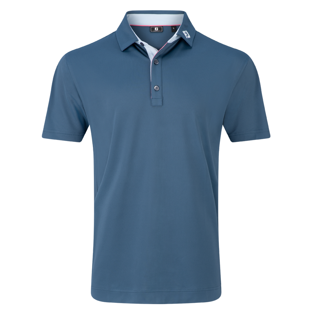 The FootJoy Men’s Pique Trim Polo delivers tour-tested performance with classic style. Featuring a regular fit and contemporary navy and skyway colour accents, this polo combines modern design with the comfort and functionality golfers demand.