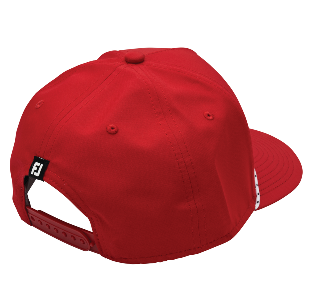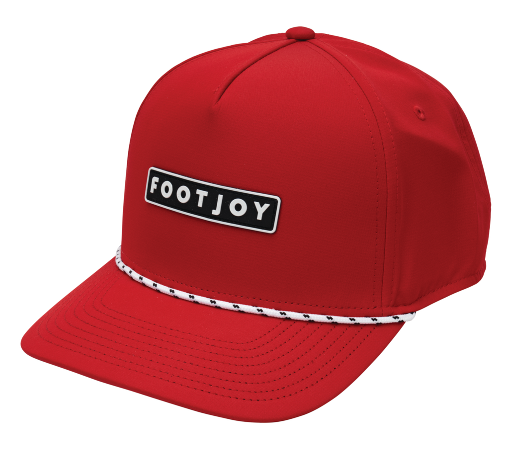 Bring casual style to the course with the FootJoy Wordmark Rope Cap. Featuring a modern FJ logo and a classic rope detail across the brim, this cap blends timeless golf style with lightweight, all-day comfort.