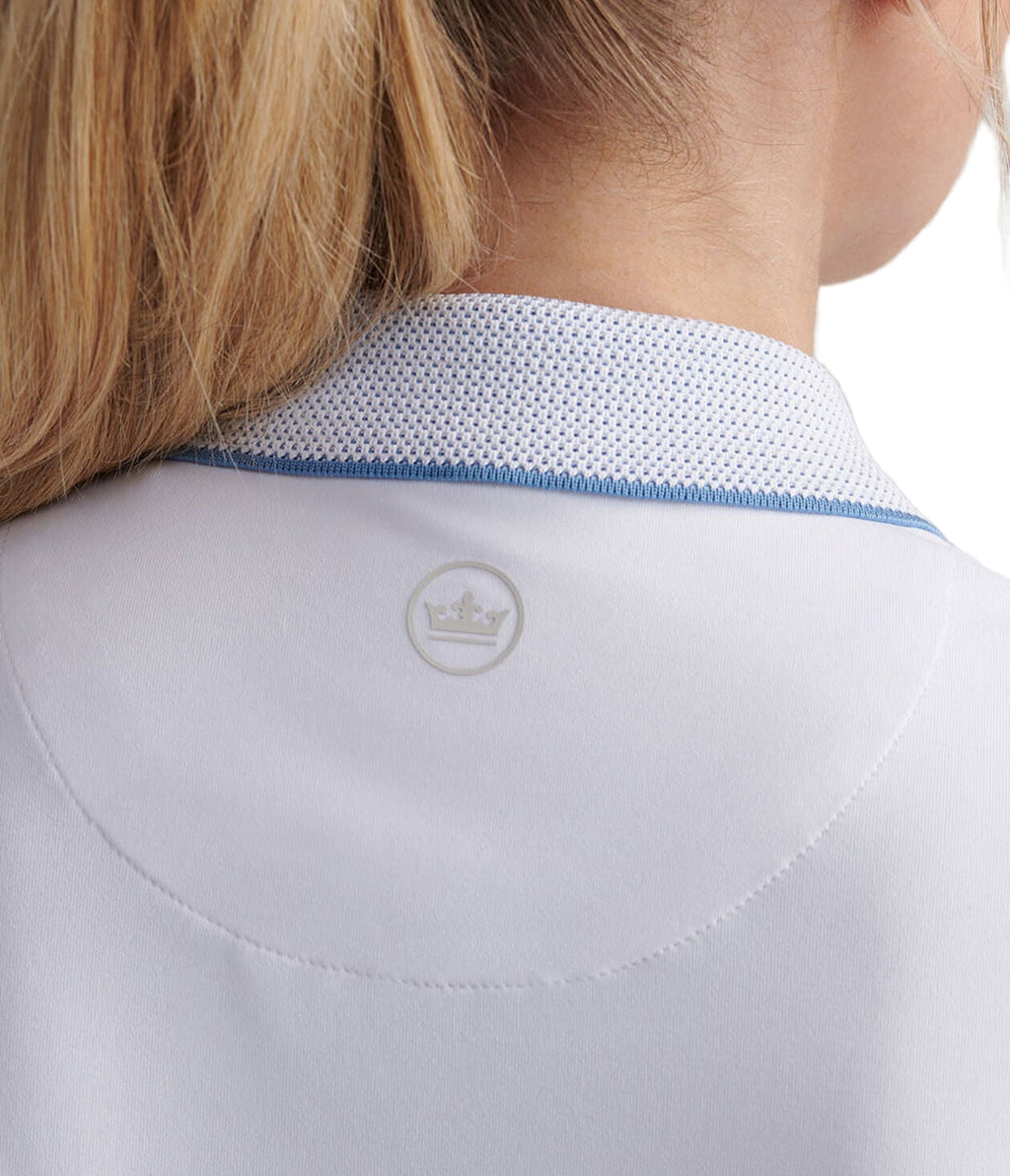 Peter Millar Kezwick Zip Neck Polo (White/Vintage Indigo) – Soft, performance fabric with moisture-wicking technology and a sporty zip neckline.