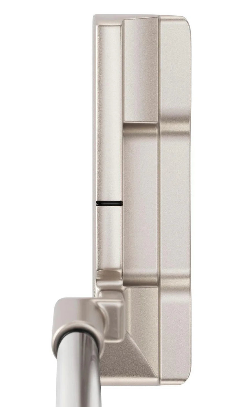 At impact, the copper underlay works in harmony with Mizuno’s deep face milling to soften vibration and promote a true, consistent roll. The result is outstanding distance control and a smooth, responsive feel across all green speeds. A thin topline alignment aid ensures effortless alignment without distracting from the putter’s classic profile.