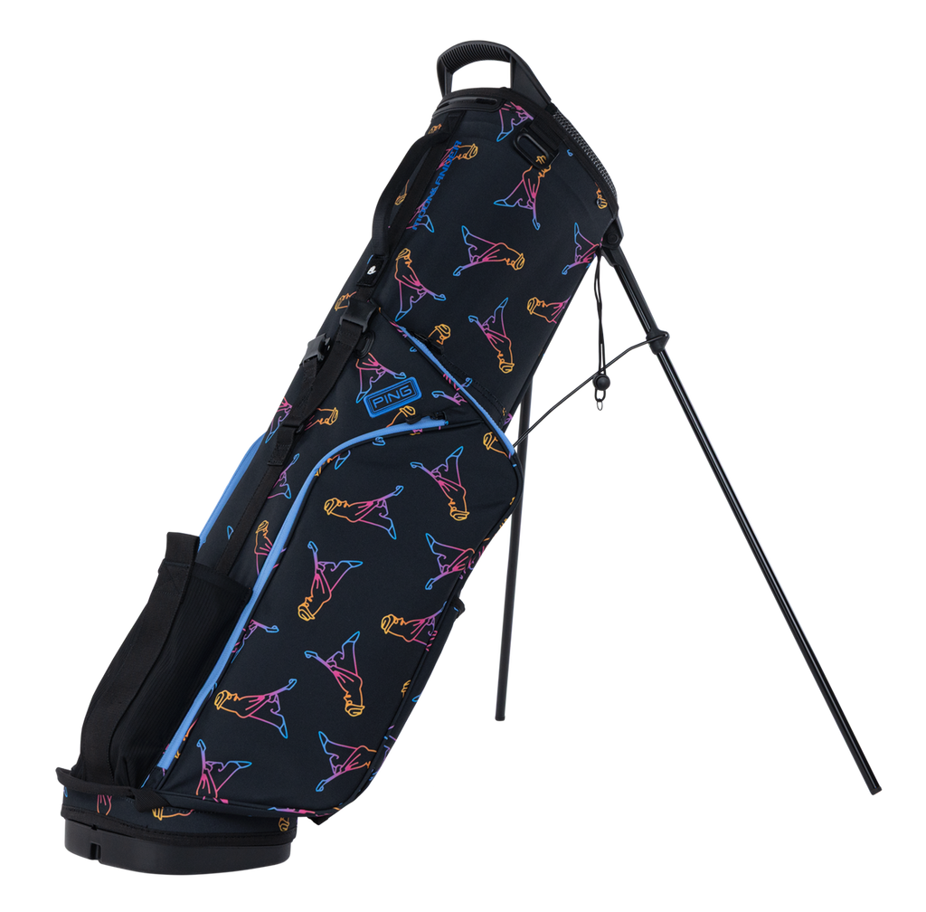 Step up your walk-the-course game with the Ping Moonlander Stand Bag in the vibrant Mr. Ping Multi design. Built for golfers who prefer to carry, this ultra-light 4.5 lb bag combines playful styling with practical performance. With six thoughtfully placed pockets and a streamlined silhouette, it offers everything you need without the bulk. The adjustable strap system lets you customise your carry style, and junior golfers can easily adapt the bag using Prodi G club risers.