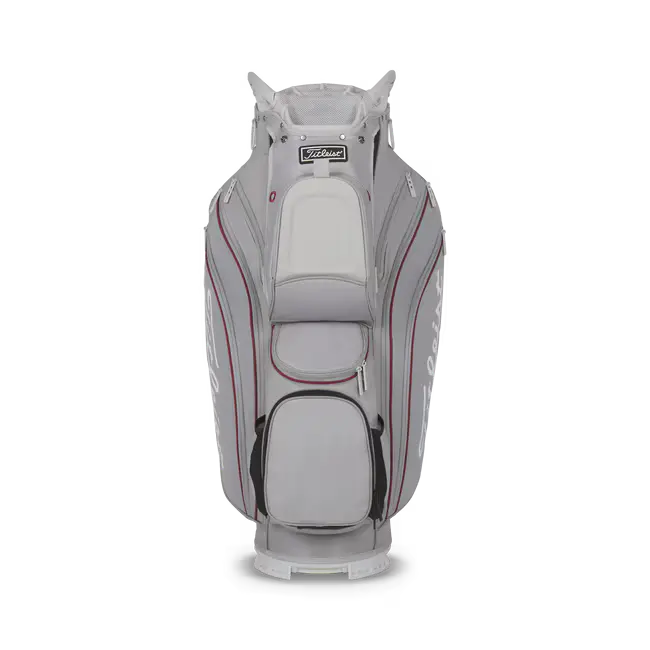 The Titleist Cart 15 Cart Bag - Cool Gray/Crimson/White delivers premium organisation and storage for golfers who demand maximum efficiency on the course. Built with 15 full-length dividers and a dedicated putter well, this cart bag keeps your clubs perfectly separated and easily accessible.