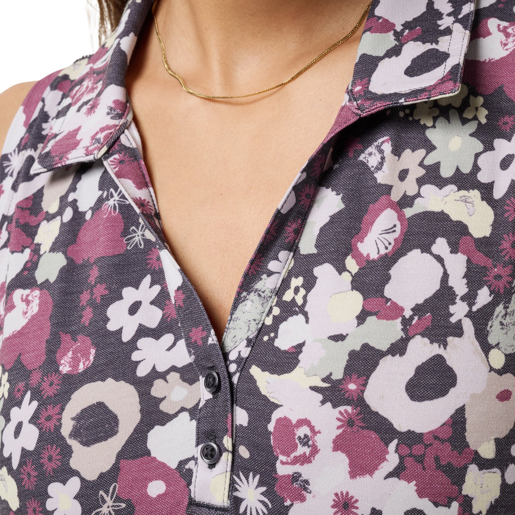 Embrace effortless style and freedom of movement with the TravisMathew Ladies Featherweight Sleeveless Polo 2.0 in Greystone Floral. Designed with a feminine fit and airy fabric, this sleeveless polo combines classic style with premium comfort. Whether you’re on the golf course, enjoying a sunny day, or running errands, it keeps you cool, confident, and polished.
