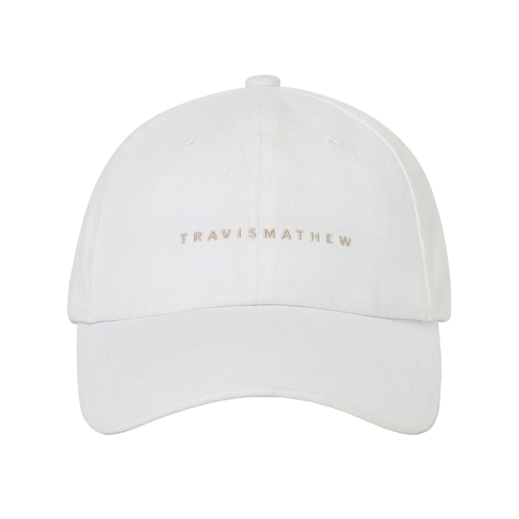 Meet the TravisMathew Ladies 'The Dad Hat' in White - your go-to baseball cap for every occasion. With a flat embroidered TravisMathew logo and an adjustable back strap, this 100% cotton cap combines timeless style with all-day comfort. Perfect for casual outings, golf, travel, or even a bad hair day, it’s versatile enough to wear anytime.