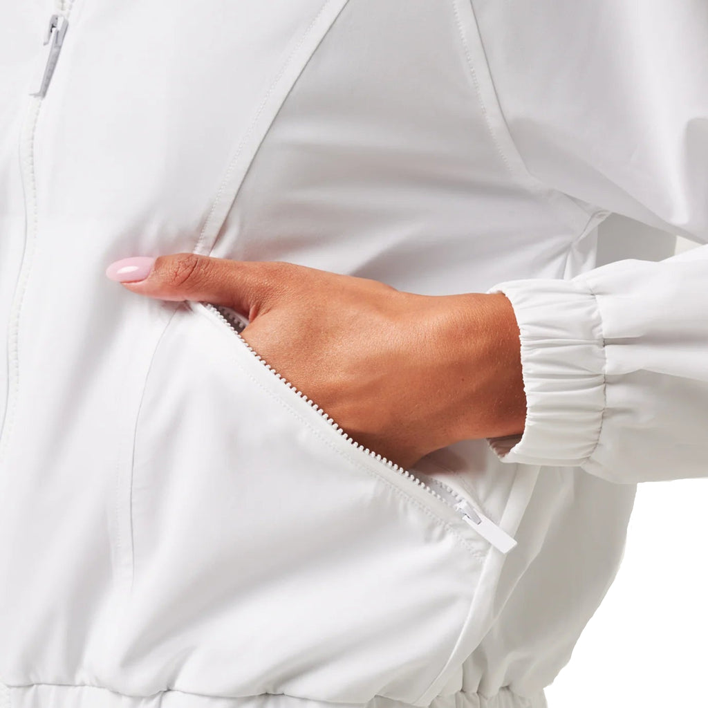 Meet the TravisMathew Ladies Travel Day Tech Woven Jacket, the ultimate lightweight, full-zip jacket designed for comfort, style, and versatility. Whether you’re traveling, heading to the gym, or enjoying a casual dinner, this jacket moves with you. Featuring unique stitch detailing and an elastic bottom band for a flattering fit, it’s a stylish essential that feels as good as it looks.