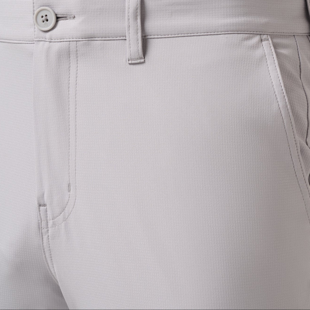 These structured pants feature silicone grip at the waist to keep your shirt tucked in during your swing, plus a hidden zip pocket to secure essentials without bulk or bounce. The lightweight polyester-elastane blend moves with you while maintaining a clean, clubhouse-ready appearance.